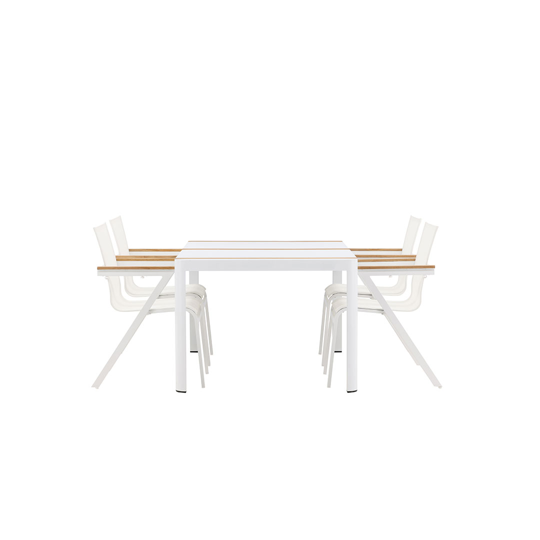 Togo Gartenset Tisch 90x150cm weiß, 4 Stühle weiß.