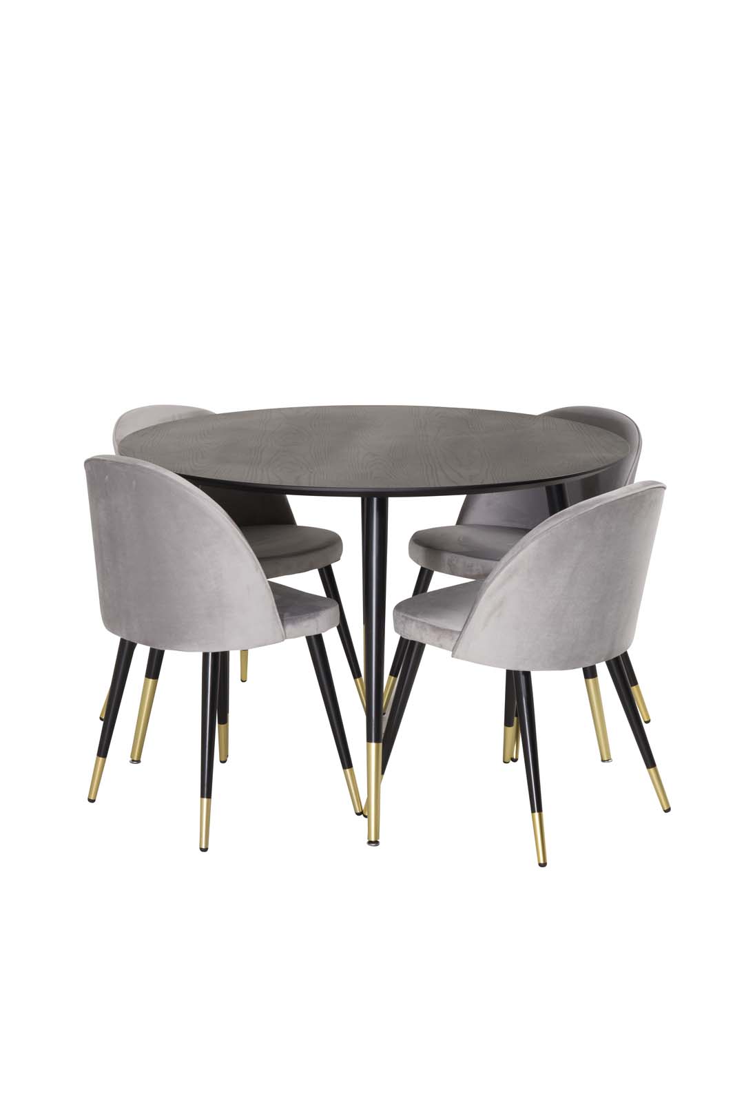 Dipp Essgruppe Tisch schwarz und 4 Velvet Stühle grau.