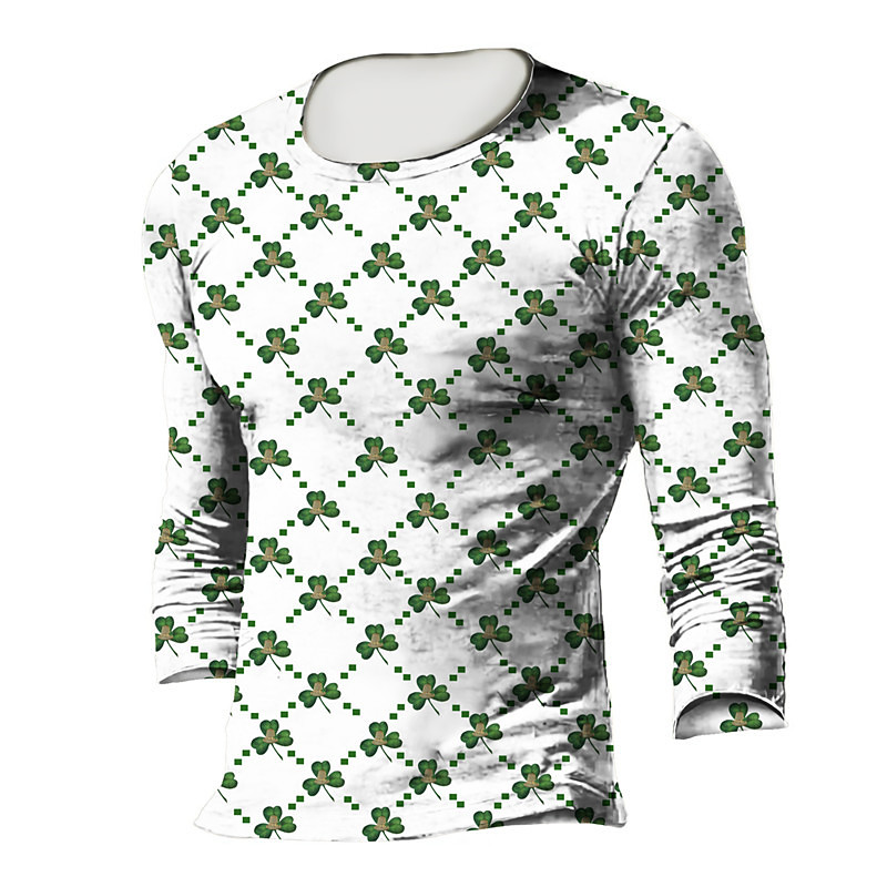 St.Patrick's Day Men's T shirt 3D Print Plaid Graphic Saint Patrick Day Crew Neck Street Daily Print Long Sleeve Tops Basic Designer Big and Tall