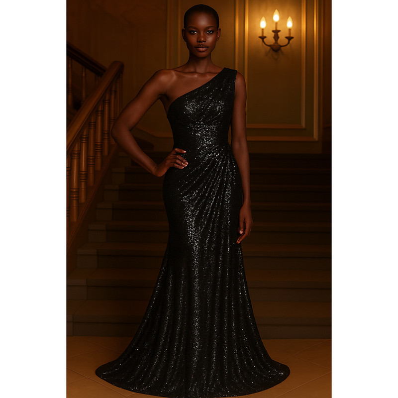 A-Line Floor Length Ankle Length Cocktail Dresses Prom Dresses Evening Gown Ball Gown Elegant Glittering High Split Sleeveless One Shoulder Wedding Formal Sequined with Glitter Sequin