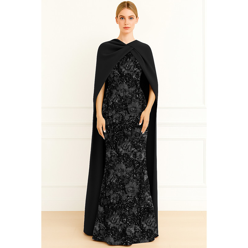 A-Line Floor Length Beaded Eembroidered Formal Dresses Mother of the Bride Dress Ball Gown with Cape Evening Gown Formal Dress Elegant Vintage Black Dress Sleeveless High Neck Wedding Formal Capes