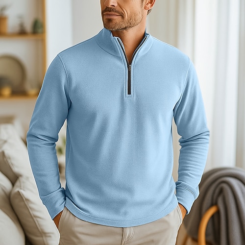 Per uomo Magliette Polo a Nido d'Ape Testurizzato Vacanza Lavoro Zip a un quarto Manica Lunga Moda Moderno Tinta unica Lavorato a maglia Primavera Autunno Bianco Nero Grigio scuro Azzurro Magliette