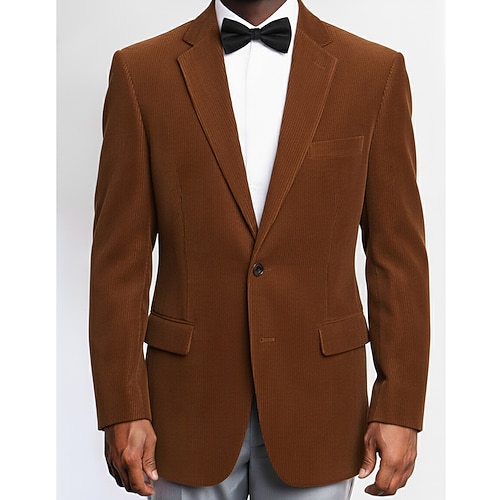 Per uomo Blazer Set Affari Cocktail party Ricevimento di matrimonio 2 pezzi Moda Casual Primavera Autunno Poliestere Tinta unica Tasca Bottoni Confortevole Monopetto Giacca Giallo scuro Nero Bianco