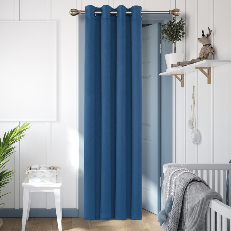Deconovo Store occultant sans nœuds en tissu uni, 8 œillets blancs, L 132 x H 214, bleu profond, 1 pièce