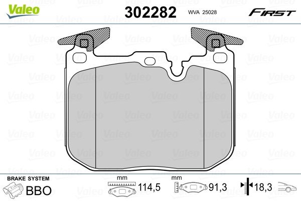 Jarrupalasarja, levyjarru, Etuakseli Valeo 302282 - bmw - OE 34 11 2 284 969, 34 11 6 857 968, 34 11 6 859 282