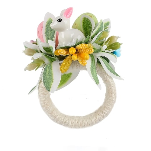 2/4 Stück Osterhasen-Serviettenringe, frühlingshafte florale Hasen-Serviettenhalter mit gesprenkelten Eiern Gänseblümchen, Tischdekoration im Landhausstil für die Osterfeier, Serviettenringe aus