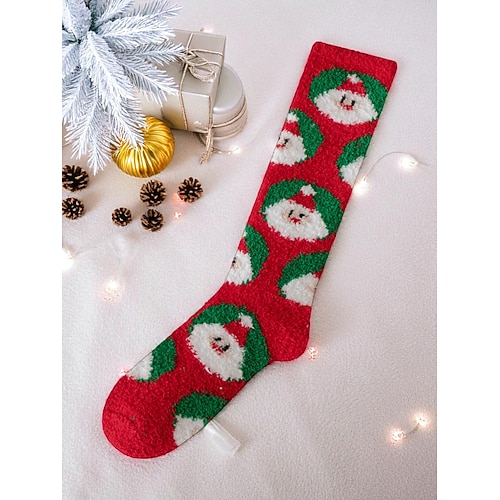 Calzini natalizi lunghi fino al ginocchio da donna, caldi e comodi calzini invernali per la casa con motivo a stelle rosse e verdi festive per rilassarsi durante le vacanze regali