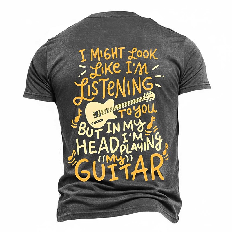 I Might Look Like I Am Listening To You But In My Head I Am Playing My Guitar Funny Guitarist T Shirt For Men Musician Graphic Tee Olive Green Music Lover Top Clothing Apparel S M L XL XXL XXXL