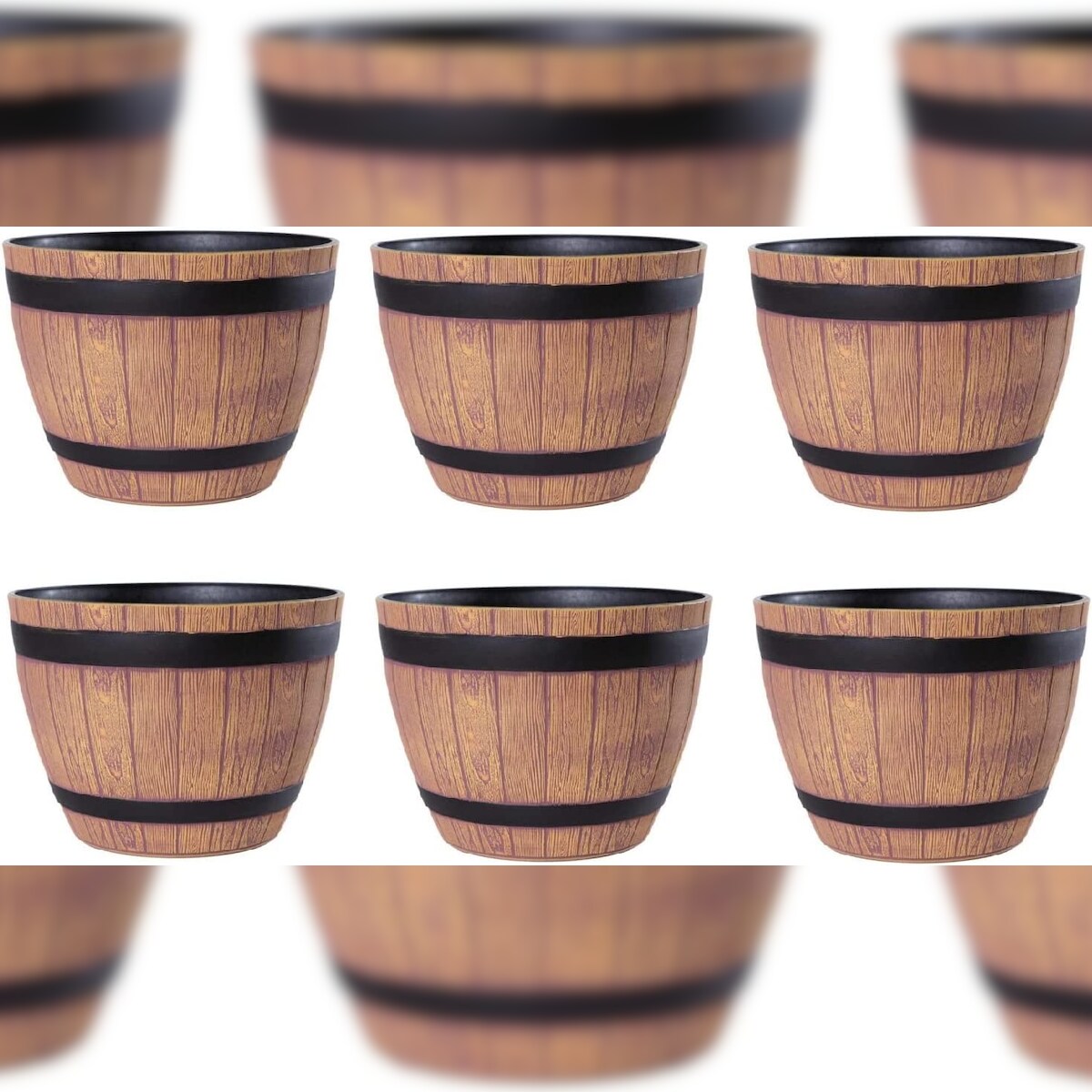 H&D Manufaktur Jinfa 6er-Set Blumenkübel aus Kunststoff in Holzoptik | Farbe: Walnuss | Design: Weinfass | Ø 38 cm