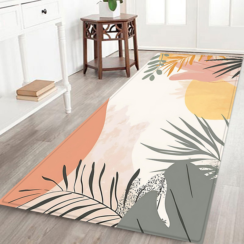 Non Slip Hallway Runner Rug Plant Flower Leaf Pattern Flannel Fabric Printed Floor Mat for Entrance Bathroom and Home Decoration