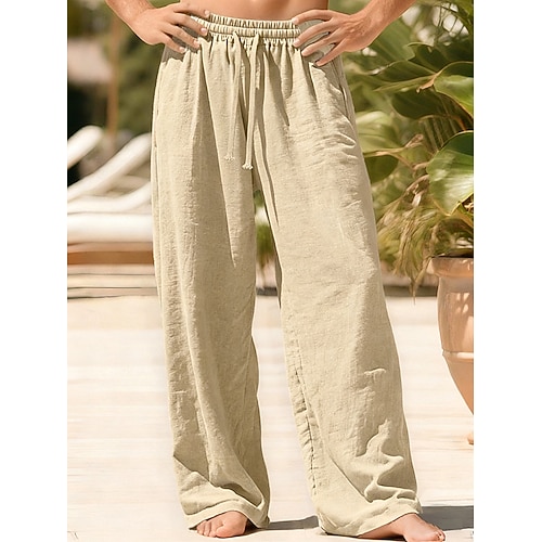 Per uomo Pantaloni di lino Pantaloni Pantaloni estivi Pantaloni da spiaggia Tasche A cordoncino Vita elastica Liscio Comfort Traspirante Da mare Giornaliero Per eventi Hawaiano Boho Nero Bianco