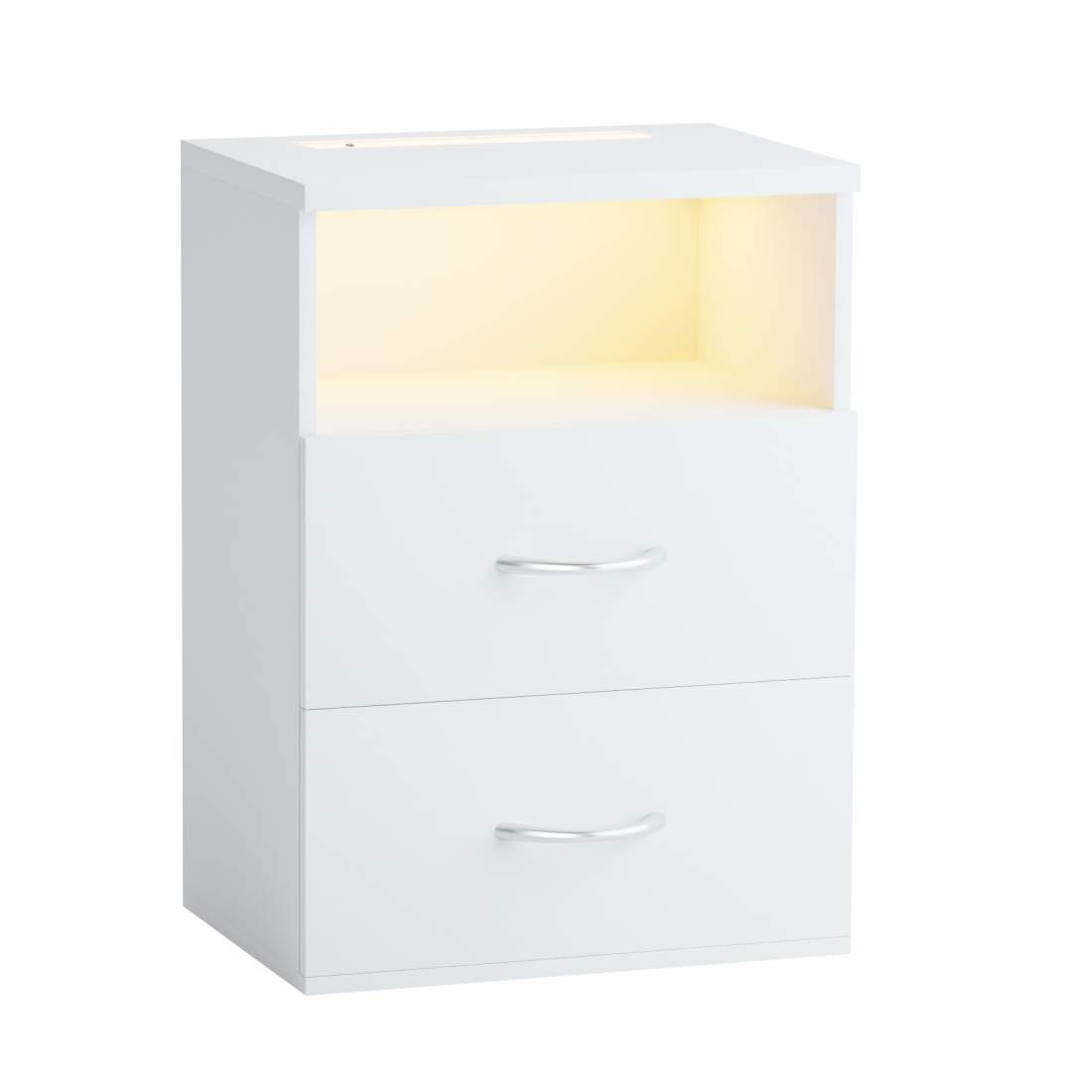 Nattbord med LED-belysning, berøringskontroll, 2 skuffer