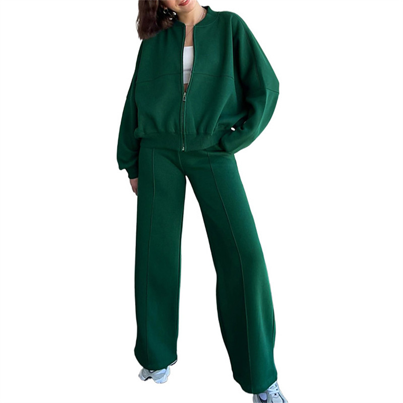 Women's Tracksuit Zip Up Sweatshirt Wide Leg Pants Pocket Solid Colored Clothing Suit Fall Black Burgundy Gym Workout Sports Windproof Long Sleeve Sport Activewear Micro-elastic Regular Fit