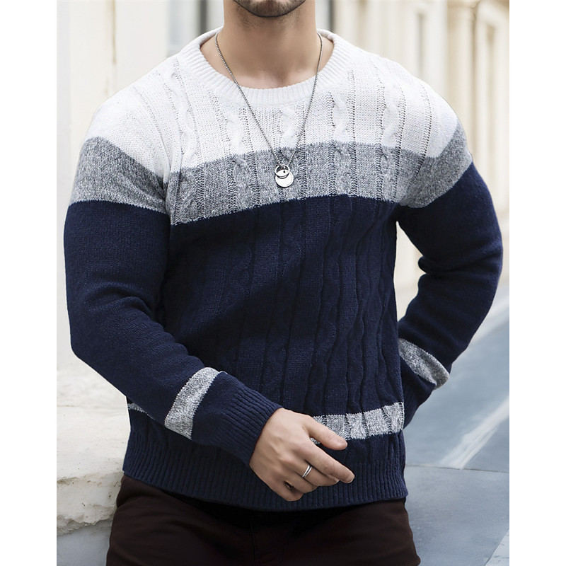 Men's Pullover Sweater Jumper Knit Sweater Ribbed Knit Regular Tops Knitted Color Block Crew Neck Fashion Basic Vacation Daily Wear Clothing Apparel Fall Winter White Red S M L