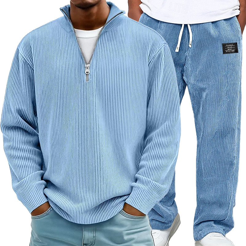 Men's Matching Sets Blue Pullover Sweatshirt Wide Leg Sweatpants Trousers Corduroy Pants Sets Long Sleeve Half Zip Outdoor Vacation Color Block Pocket 2 Piece Polyester Spring
