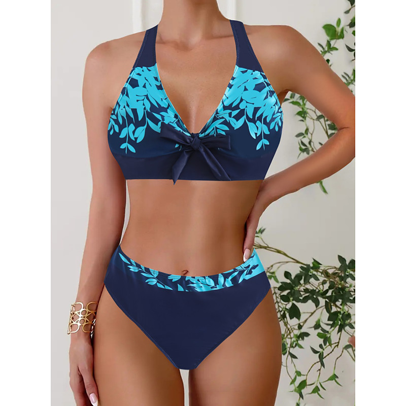 Women's Bikini 2 Piece Swimsuit Colorblock Briefs Slim Backless Vacation Beach Wear Geometric Color Block Halter Neck Sleeveless Bathing Suits