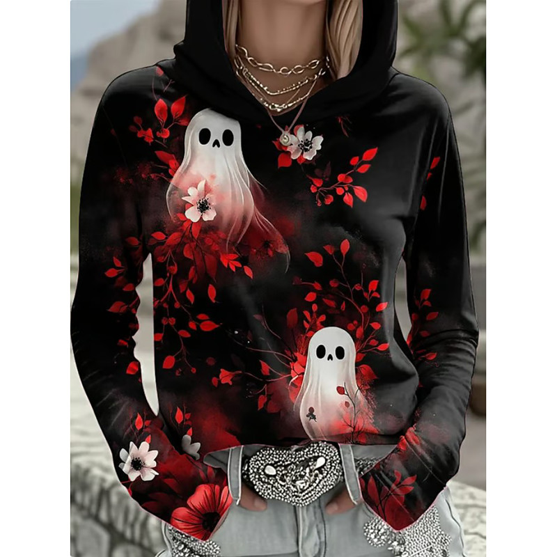 Women's Pullover Hoodie Sweatshirt Monster Graphic Skull Vintage Fashion Western Long Sleeve Hooded Street Dailywear Casual Print Front Pocket Maroon Black Red Orange Brown Fall Winter