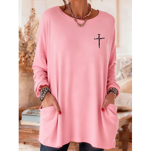 Per donna Maglietta Semplice Classico Moderno Casual Manica Lunga Girocollo Top Regolari Quotidiano Weekend Tasca Nero Bianco Giallo Rosa Verde Estate Primavera Autunno