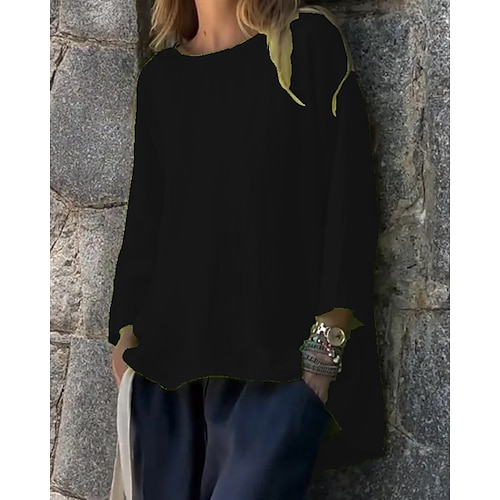Per donna Blusa Tinta unica Attivo Casual Manica Lunga Girocollo Top Regolari Quotidiano Ferie Orlo asimmetrico Nero Bianco Giallo Rosso Verde Autunno Inverno