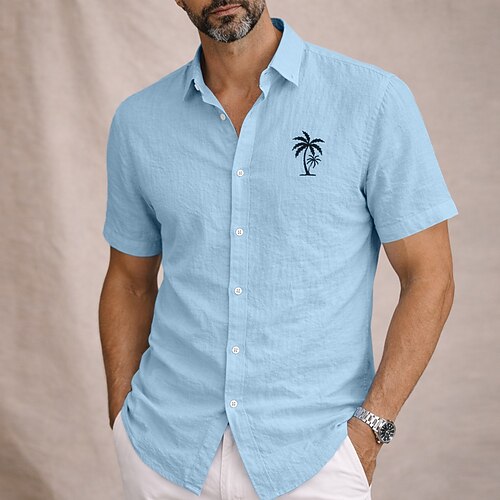 Per uomo Camicia di lino Camicia minimalista Aloha Camicia Estiva Camicia casual Camicia con Bottoni Albero di Cocco Casuale Spiaggia Nero Bianco Rosa Azzurro cielo Manica Corta Bavero Estate