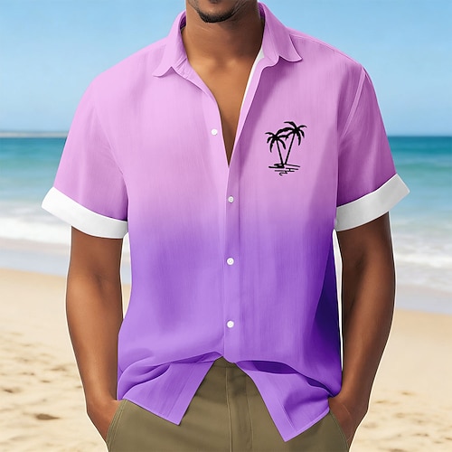 Per uomo Albero di Cocco Colore sfumato Piante Tropicali Camicia hawaiana estiva Camicia con Bottoni Camicia Aloha Manica Corta Hawaiano Vacanza Ferie Abbigliamento mare Estate Primavera Collo