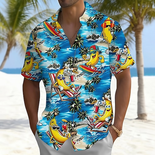 Per uomo Albero di Cocco Banana Surf Camicia hawaiana estiva Camicia con Bottoni Camicia Aloha Manica Corta Hawaiano Divertente Vacanza Estate Primavera Collo ripiegato Stampa 3D camicie con colletto