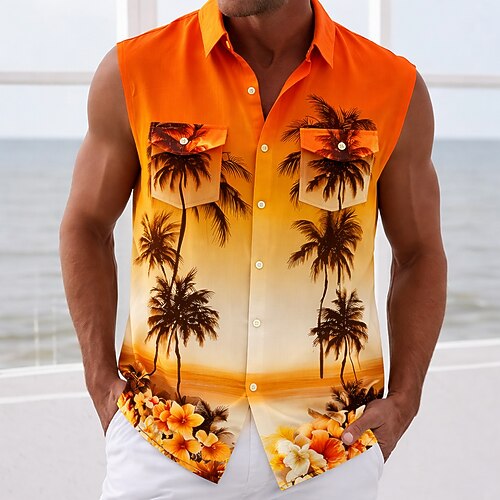 Per uomo Albero di Cocco Fiori tropicali Colore sfumato Camicie hawaiane Camicie tropicali Maglietta senza maniche Senza Maniche Hawaiano All'aperto Spiaggia Casual Estate Primavera Collo ripiegato