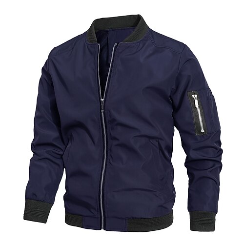Per uomo Giubbotto bomber Giacca di transizione Uscire Tasca Tutte le stagioni Semplice Classico Collo alla coreana Regolare Nero Blu marino Grigio Giacca