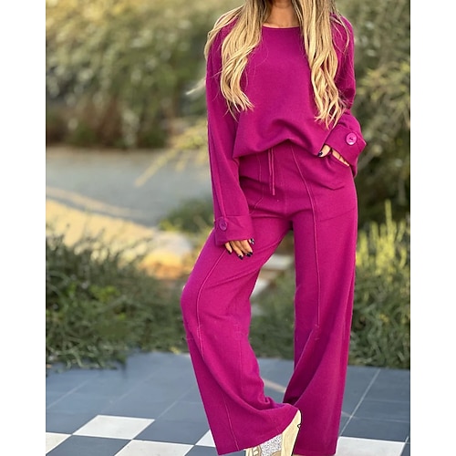 Per donna Elegante Moda Essenziale Set di Pantaloni Manica Lunga Girocollo Tinta unica All'aperto Lavoro Casuale Nero Bianco Giallo Estate Vestibilità regolare