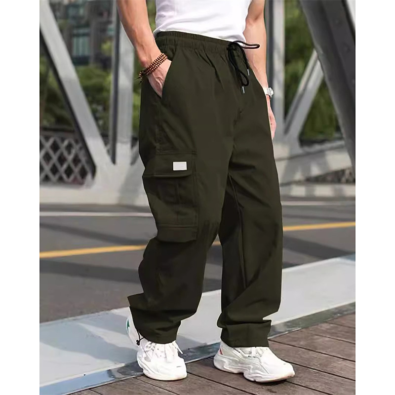 Men's Cargo Pants Trousers Drawstring Elastic Waist Multi Pocket Plain Wearable Outdoor Daily Camping Hiking Fashion Classic Black Army Green