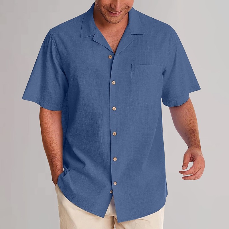 Men's Casual Shirt Plain Vacation Black Dark Navy Green Khaki Short Sleeve Lapel Summer Clothing Apparel