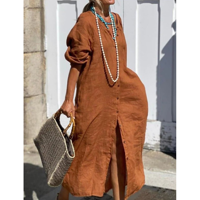 Women's Maxi Dress Sundress Casual Boho Daily Holiday Plain Long Sleeve Crew Neck Black Navy Blue Orange Green Summer