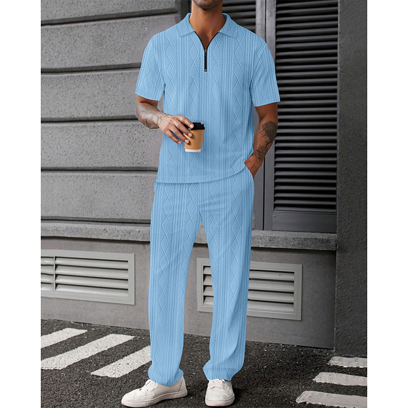 Men's Waffle Polo Shirts Polo Casual Sports Lapel Short Sleeve Fashion Basic Plain Quarter Zip Summer Spring Black White Sky Blue Brown Army Green Gray Waffle Polo Shirts