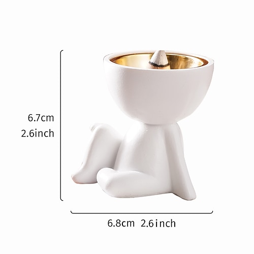 1 bruciatore di incenso decorativo per la casa in resina con una piccola figura seduta su un ginocchio. Questo prodotto per incenso è realizzato in resina con una piccola figura seduta su un ginocchio