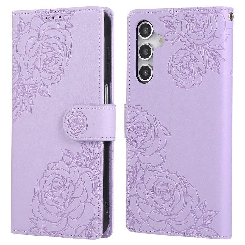 Samsung Galaxy A55 5G Plånboksfodral Konstläder Ros Blomma - Lila