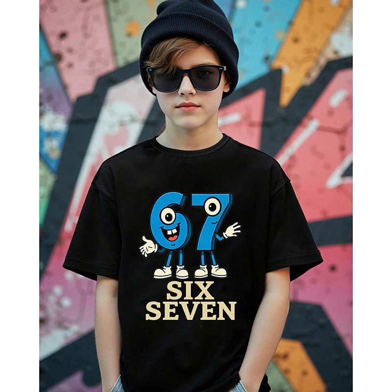 Cotton Kids Boys' Black Graphic Cartoon Funny Slang 67 T shirt Blouse Crew Neck Short Sleeve Outdoor Dailywear Fashion Streetwear Designer Printing Summer