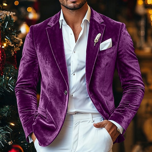 Da uomo Cappotto Invernale Blazer di velluto Formale Abbigliamento da sera Evento / Festa Classico Autunno Autunno Inverno 100% Poliestere Velluto Tinta unica Monopetto Un Bottone Giacca Rosso Blu