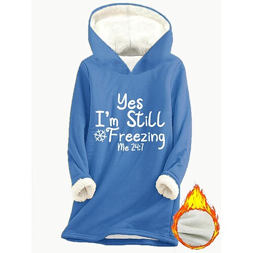 Per donna Felpa con cappuccio Grafico Lettera Caldo Casual Pile Sherpa Manica Lunga Con Cappuccio Top lunghi Streetwear Abbigliamento Quotidiano Casuale Stampato Rosa scuro Blu Grigio Autunno Inverno