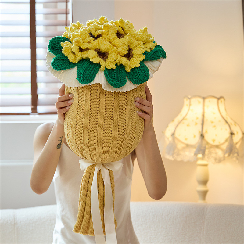 Valentine's Day Handheld Flower Bouquet Throw Pillow, Woven Floral Arrangement Decorative Cushion, Perfect Holiday Gift for Sofa, Bed, Living Room