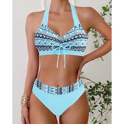 Per donna Costumi da bagno Due pezzi Vita alta Costume da bagno Arricciato Attivo Vacanza Grafico A Pois Collo a U Senza Maniche Costumi da bagno