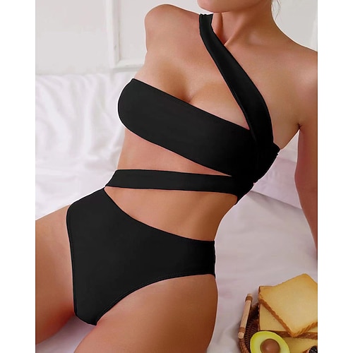 Costume da bagno intero da donna snellente sexy con taglio a spalla monokini leopardato controllo della pancia vita alta schiena scoperta vacanze al mare colore blocco scollo asimmetrico senza maniche