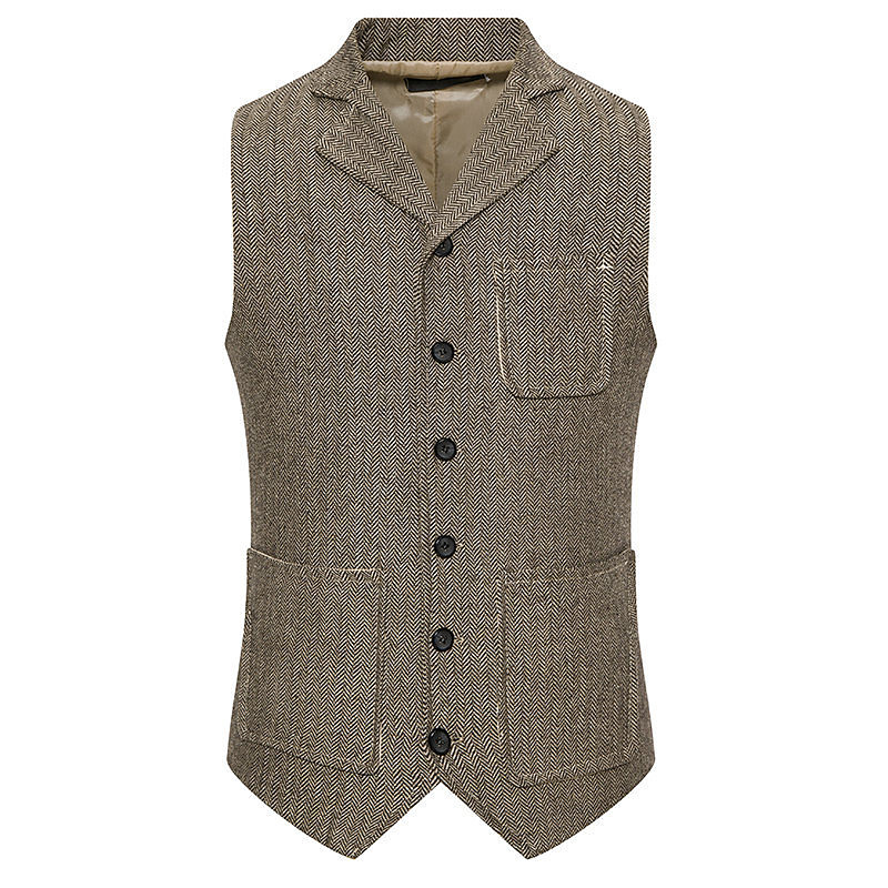 Men's Vest Waistcoat Gilet Vacation Party Business Fashion Casual Spring Fall Pocket Buttons Polyester Comfortable Plain Single Breasted One-button Lapel Regular Fit Black Khaki Dark Gray Vest