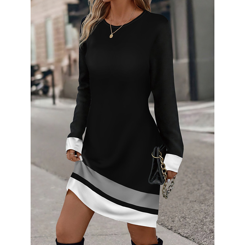 Women's Mini Dress Winter Dress Stripe Print Crew Neck Daily Vacation Long Sleeve Fall Winter