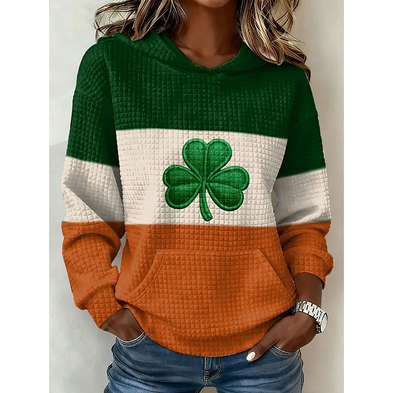 Women's Pullover Hoodie Sweatshirt Graphic Shamrock Warm Casual Print Long Sleeve Hooded Regular Tops Casual Street Dailywear Print Orange Fall Winter