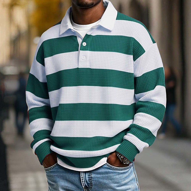 Men's Horizontal Stripes Waffle Polo Shirts Rugby Polo Rugby Polo Shirts Long Sleeve Polo Shirts Lapel Sportswear Casual School Athleisure Daily Wear 3D Print Spring Fall Winter Yellow Red Green