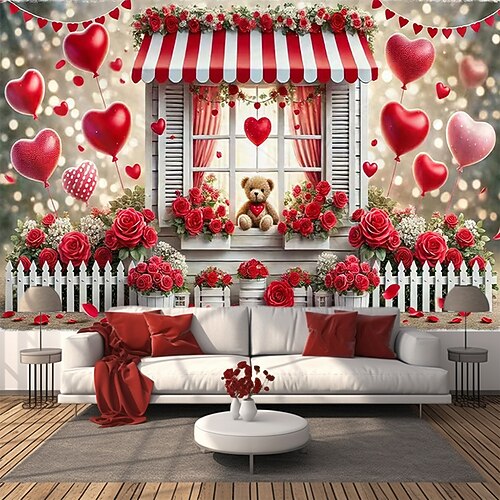 San Valentino arazzo Striscioni Coperta Rose Amore Cuori Carino Romantico 3D Da serata Soggiorno Sfondi di ripresa Decorazione per proposta di matrimonio Arredamento per la casa