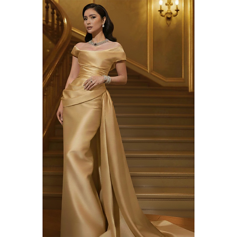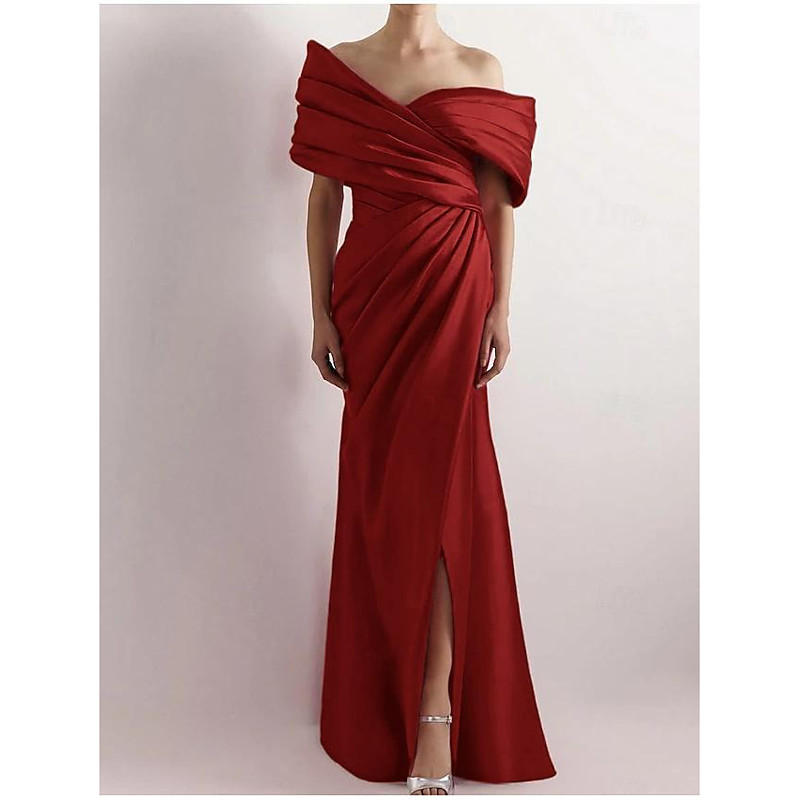Mermaid Trumpet Floor Length Prom Dresses Evening Gown Ball Gown Formal Dress Elegant Celebrity Style Red carpet Sleeveless Off Shoulder Evening Party Garden Party Satin with Ruched Slit