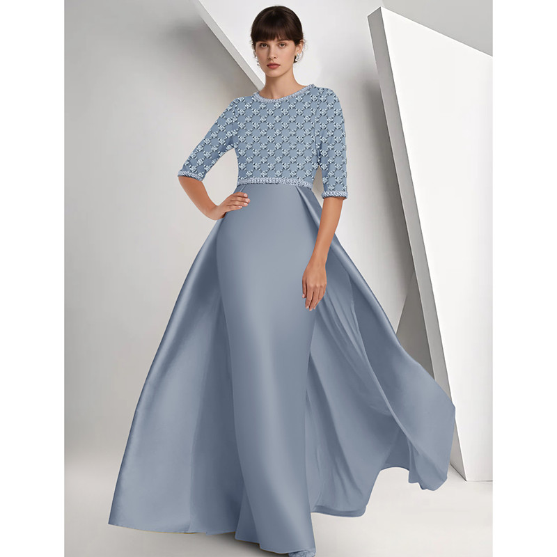 Ball Gown A-Line Floor Length Beaded Eembroidered Formal Dresses Mother of the Bride Dress Evening Gown Ball Gown with Overskirt Formal Dress Elegant Vintage Glittering Half Sleeve Crew Neck Wedding