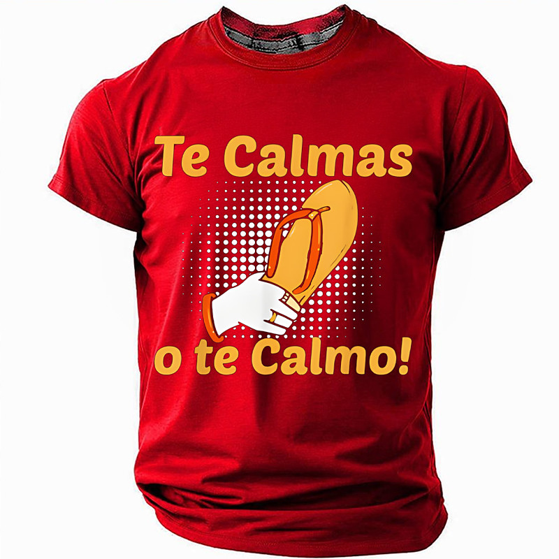 Men's Funny Graphic T-Shirt: Te Calmas o te Calmo! (Calm Down or I'll Calm You Down!) Spanish Chancla Family Humor.