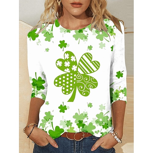 T-Shirt da donna di San Patrizio con grafica Shamrock Moda Casuale Maniche Lunghe Collo Crew Collo Rotondo Top Regolari Stampa Quotidiana Weekend Bianca Verde Estate Primavera Autunno